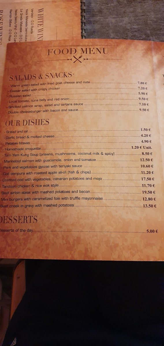Situated in the picturesque Playa Blanca, Izaro Taberna offers a menu that champions culinary excellence. With a focus on quality ingredients, their offerings include tantalizing dishes such as Patatas bravas and Croquetas de jamón ibérico, priced at €6.50 and €1.80, respectively. Seafood lovers will relish the Tataki de salmón with its beautiful maracuyá sauce, available for €17.20, while the Babá ganoush harmonizes roasted flavors at €12.20.